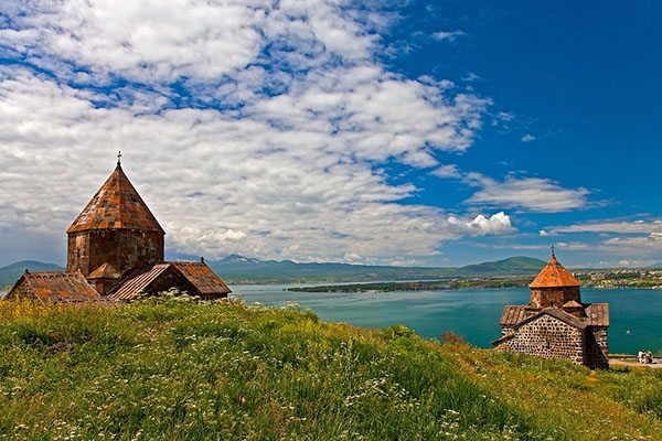 Departure to Lake Sevan and Sevanavank Monastery. This huge mountain lake which takes up 5% of Armenia's surface area and is about 2,000 meters above sea level. On a clear and sunny day, the water is often a deep turquoise color.