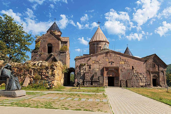 After breakfast we depart to Lori region visit Akhtala one of the few churches in Armenia with its inner walls covered with frescoes, painted between 1205 and 1216, and among the best examples of Byzantine art outside of the Empire of Byzantium. Visit to Haghpat Monastic complex. It is an exceptional example of ecclesiastical architecture that developed in Armenia in the 10th to 13th centuries which is unique by virtue of its blending of elements of both Byzantine church architecture and the traditional vernacular building style of this region. Sanahin monastery: In the first half of the 10 th century Armenian clerics expelled from Byzantium constructed St. Astvatsatsin (the Mother of God) in Sanahin. The church was very similar to Georgian cult structures of that time – the cross-shaped facade crowned with big dome resting on round drum. The main monastery church, Amenaprkich (962), Gregory Magistros academy (11 th century), the round St. Gregory the Illuminator temple (1061), scriptorium (1063) and belfry (13th century) were later built around it.