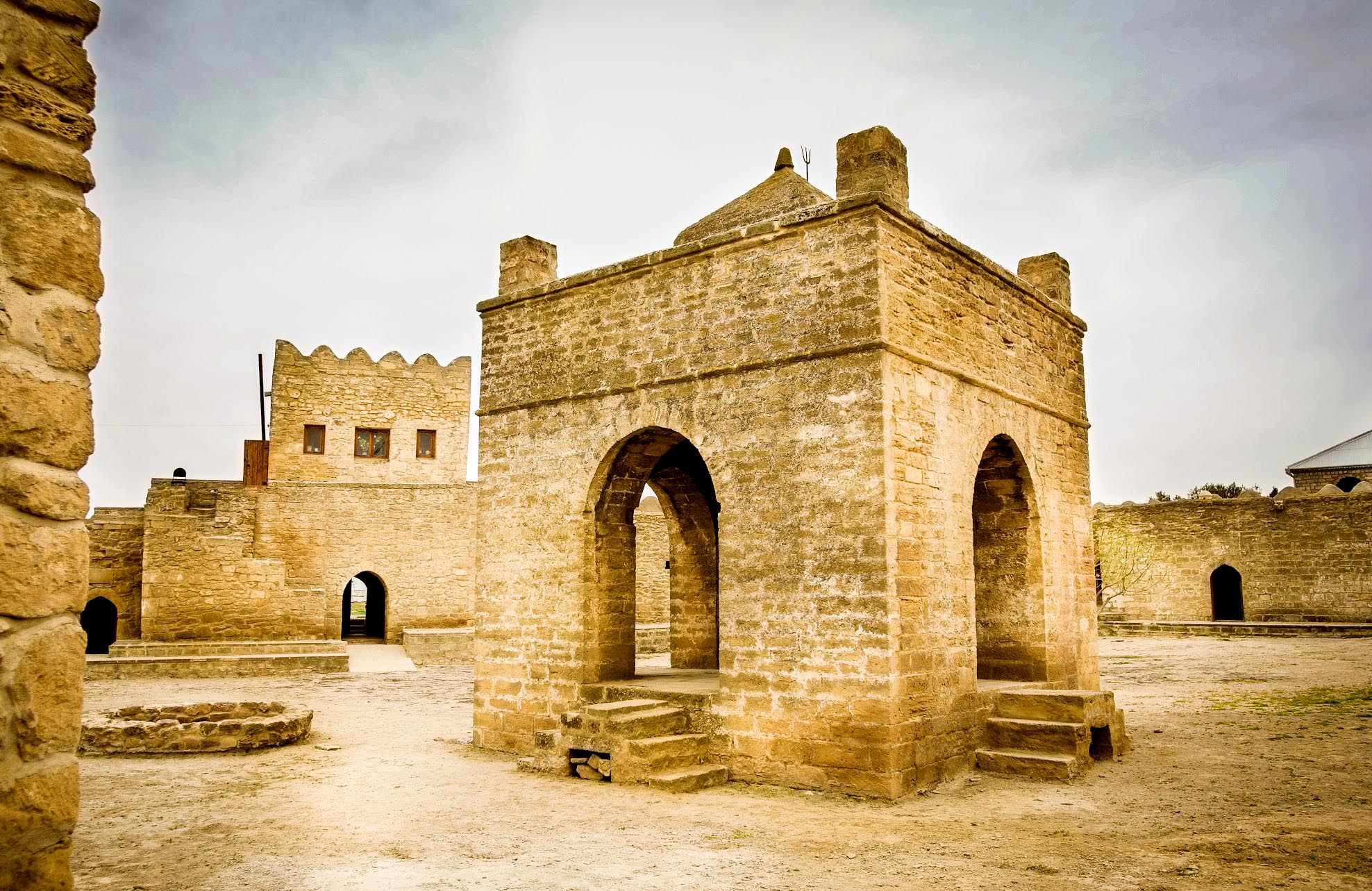 The first station will be Yanar Dag – 116-meter hill located on top of a pocket of natural gas that constantly erupts into flames. These flames jet out at least three meters into the air, through a porous layer of sandstone. Unlike the other mud volcanoes of Azerbaijan, Yanar Dag has no seepage of mud or liquid, so the fire always burns. Then we will visit the Temple of Eternal Fire - Ateshgah - is an authentic Azerbaijani exotic. It is well-known practically all over the world. It is located 30 km from the center of Baku in the suburb of Surakhany. This territory is known for such unique natural phenomenon as burning natural gas outlets (underground gas coming onto surface contacts oxygen and lights up). The temple in its present state was constructed in the 17th-18th centuries. It was built by the Baku-based Hindu community related to Sikhs.However, the history of the Temple is even longer. From times immemorial this was the holy place of Zoroastrians- fire worshippers (approximately beginning of our era). They attributed mystical significance to the inextinguishable fire and came there to worship the relic. The final station is Gala – Archaeological and Ethnographic Museum Complex in the open air to preserve the monuments in the territory of the Gala State History and Ethnography Museum and enrich the Preserve by bringing in archaeological finds discovered in Absheron. Petroglyphs covering the period from the 3rd and 2nd millennia B.C. to the Middle Ages, gavaldash (tambourine stone), ceramics, domestic and adornment items, weapons and coins, conserved remnants of an ancient residential complex etc. found in the Absheron peninsula were placed at the Complex.